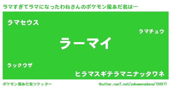 | 料理風あだ名 | 『ラマすぎてラマになったわねのカルパッチョ風』 |