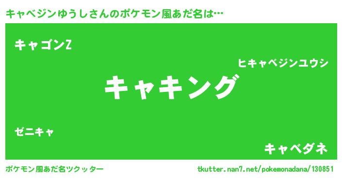 | 男性向けラノベタイトル風あだ名 | 『キャベジンゆうし~年齢イコール彼女いない歴の魔法使い~』 |