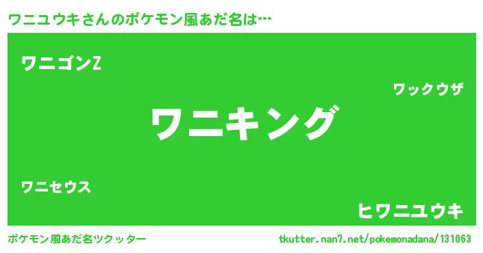 | 男性向けラノベタイトル風あだ名 | 『ワニユウキ~年齢イコール彼女いない歴の魔法使い~』 |