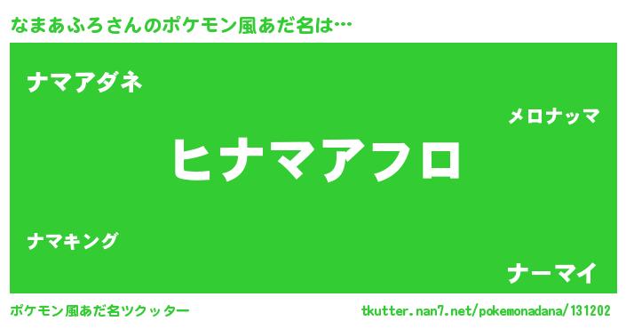 | 意味不明あだ名 | 『とにかく怪しいなまあふろ』 |