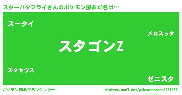 | 意味不明あだ名 | 『住所不定無職スターバタフライ(1歳)』 |