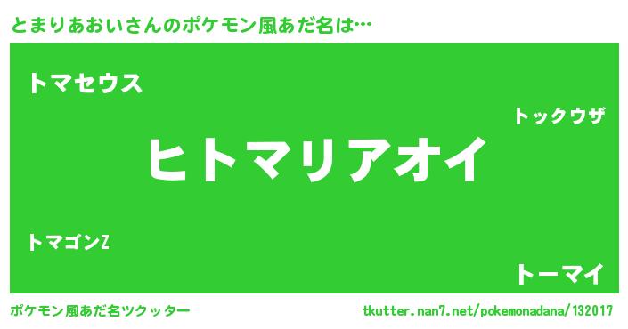 | 意味不明あだ名 | 『とにかく怪しいとまりあおい』 |