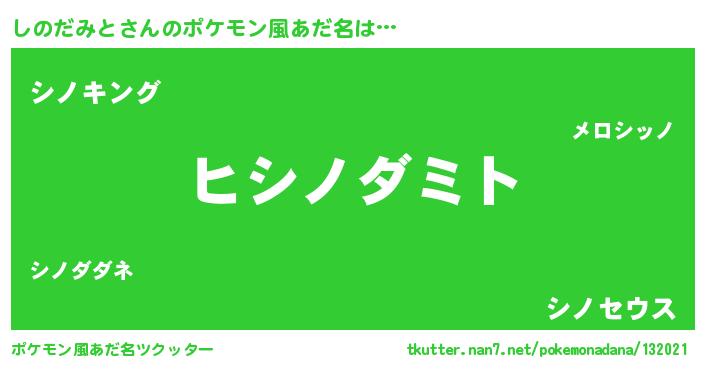 | 男性向けラノベタイトル風あだ名 | 『しのだみとの嫁は女の子じゃないと思った?』 |