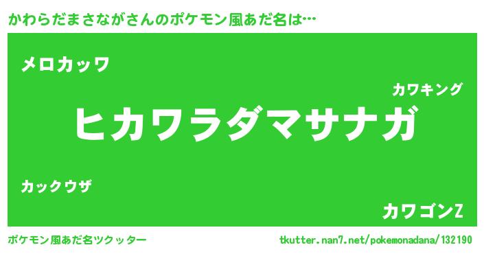 | ヘコむあだ名 | 『かわぷりん』『かわらだまさなが(苦笑)』 |