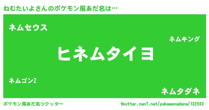 | ヒーロー風カッコイイあだ名 | 『銀牙騎士ネム』『最強戦士ネムタイヨ』 |