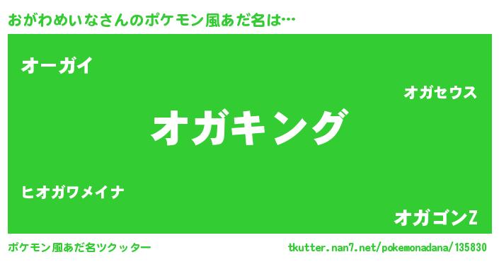 | 男性向けラノベタイトル風あだ名 | 『おがわめいな~年齢イコール彼女いない歴の魔法使い~』 |
