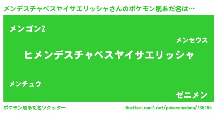 | 男性向けラノベタイトル風あだ名 | 『メンデスチャベスヤイサエリッシャの嫁は女の子じゃないと思った?』 |