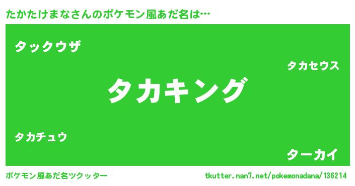 | 料理風あだ名 | 『たかたけまなごはん』 |