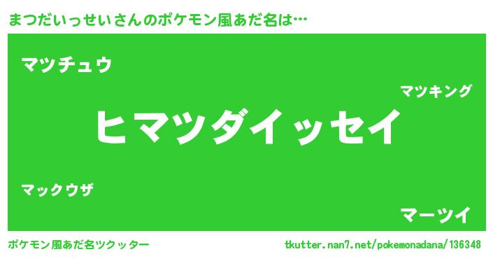 | 意味不明あだ名 | 『とにかく怪しいまつだいっせい』 |