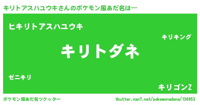 | 欧米人風あだ名 | 『キリトアスハユウキクリステル』 |