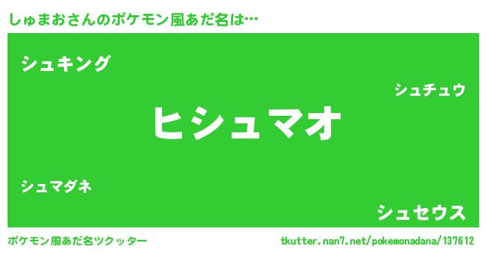| 男性向けラノベタイトル風あだ名 | 『ダンジョンにしゅまおを求めるのは間違っているだろうか』 |