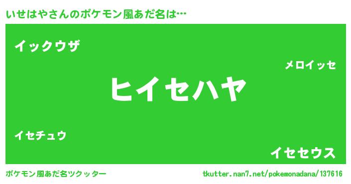 | ヒーロー風カッコイイあだ名 | 『炎刃騎士イセ』『慈愛の使者いせはや』 |