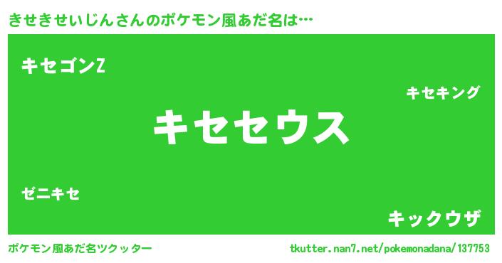 | 男性向けラノベタイトル風あだ名 | 『Re:きせきせいじんから始める異世界生活』 |