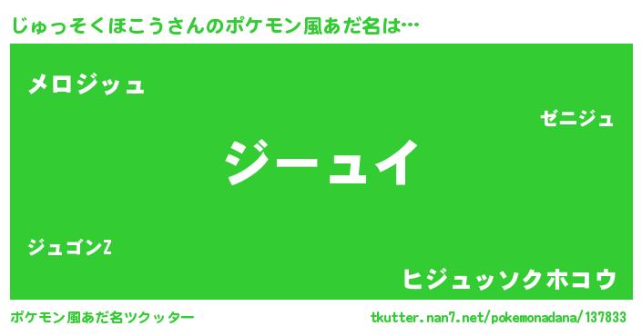 | ヘコむあだ名 | 『じゅぷりん』『じゅっそくほこう(笑)』 |