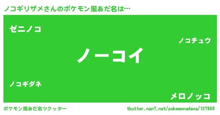 | ヘコむあだ名 | 『ノコギリザメ(遠い目)』『ノコにー』 |