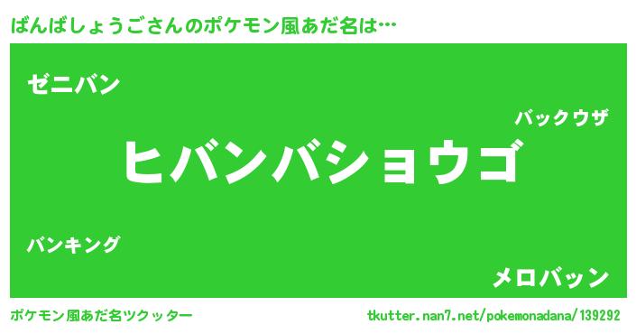 女子向けラノベタイトル風あだ名 | 『ばんばしょうごの卵を拾いまして』 |