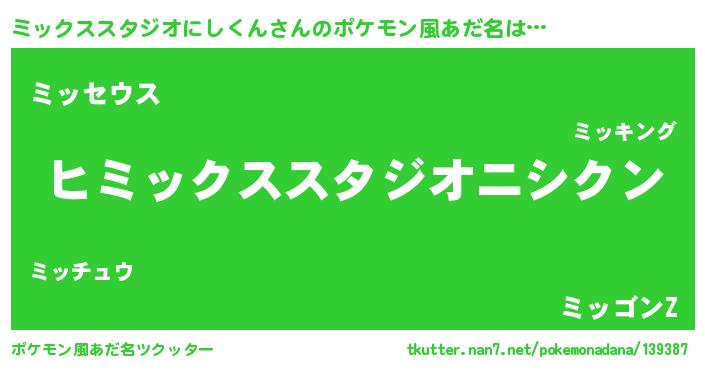 | 意味不明あだ名 | 『とにかく怪しいミックススタジオにしくん』 |