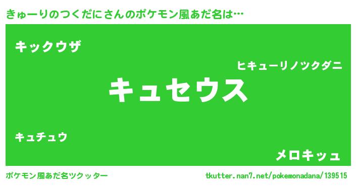| 男性向けラノベタイトル風あだ名 | 『Re:きゅーりのつくだにから始める異世界生活』 |