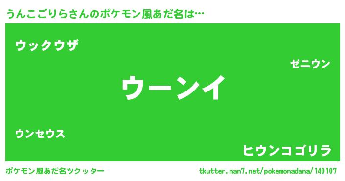 | 男性向けラノベタイトル風あだ名 | 『魔弾の王とうんこごりら』 |