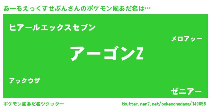 | 欧米人風あだ名 | 『アンジェラ・あーるえっくすせぶん』 |