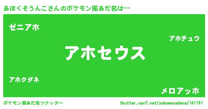 | 意味不明あだ名 | 『自称あほくそうんこ』 |