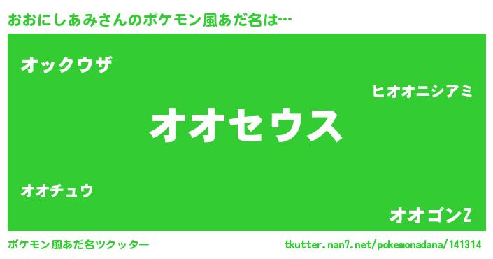 | 意味不明あだ名 | 『自称おおにしあみ』 |