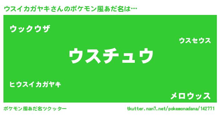 | 男性向けラノベタイトル風あだ名 | 『ウスイカガヤキアートオンライン』 |