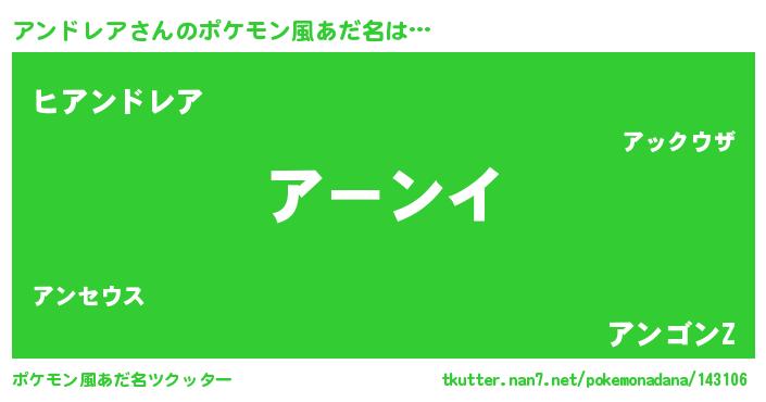 | 女子向けラノベタイトル風あだ名 | 『アンドレアが死なない童話 林檎のアンドレアの診療簿』 |