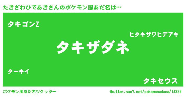 | 男性向けラノベタイトル風あだ名 | 『やはりたきざわひであきの青春ラブコメはまちがっている 』 |