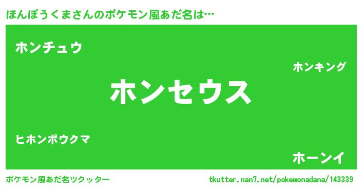 | 男性向けラノベタイトル風あだ名 | 『Re:ほんぽうくまから始める異世界生活』 |