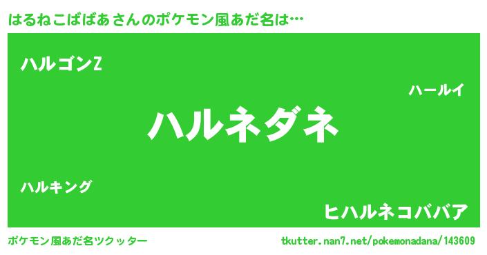 | 欧米人風あだ名 | 『はるねこばばあクリステル』 |