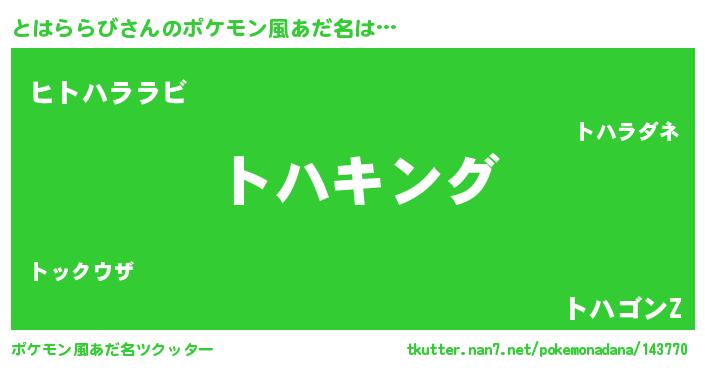 | 男性向けラノベタイトル風あだ名 | 『トハララビスレイヤー』 |