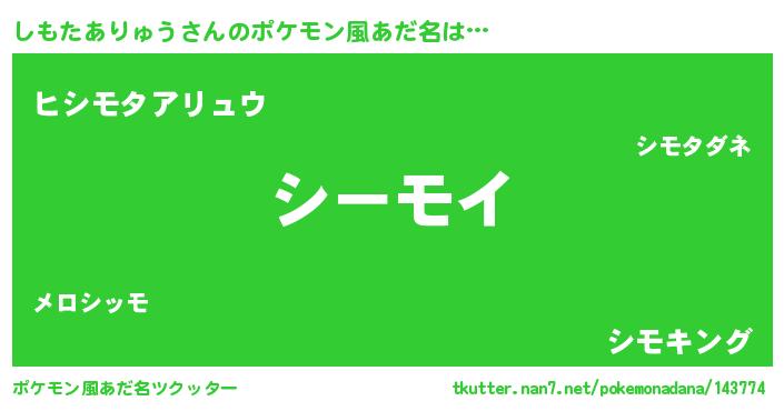 | 意味不明あだ名 | 『住所不定無職しもたありゅう(2歳)』 |