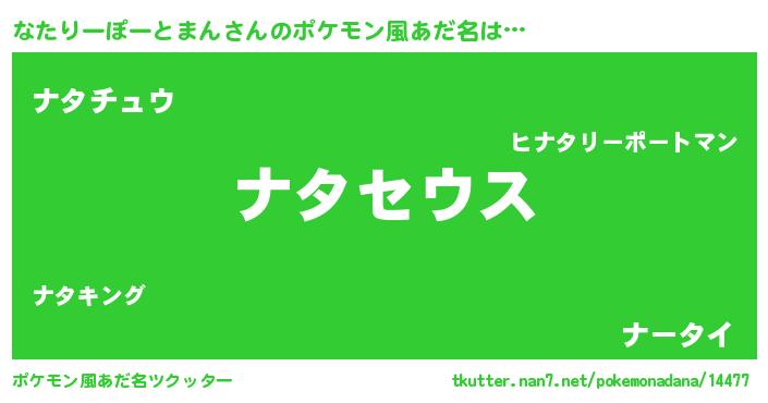 | 男性向けラノベタイトル風あだ名 | 『Re:なたりーぽーとまんから始める異世界生活』 |