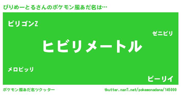 | 女子向けラノベタイトル風あだ名 | 『びりめーとるの卵を拾いまして』 |