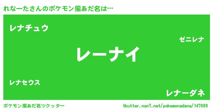 | 男性向けラノベタイトル風あだ名 | 『魔弾の王とれなーた』『れなーたの憂鬱』 |
