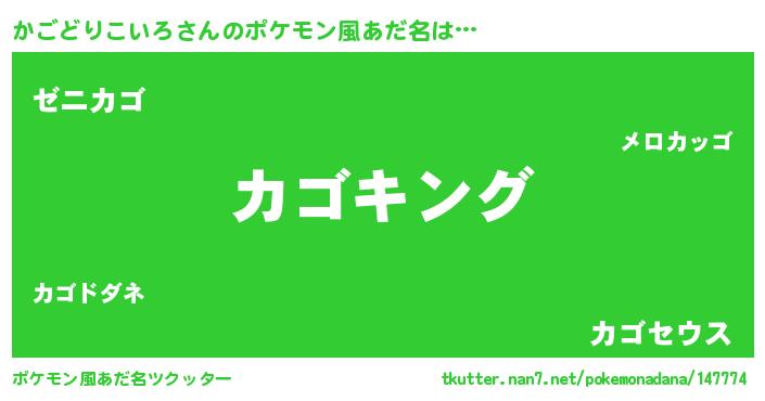 | 男性向けラノベタイトル風あだ名 | 『かごどりこいろ~年齢イコール彼女いない歴の魔法使い~』 |