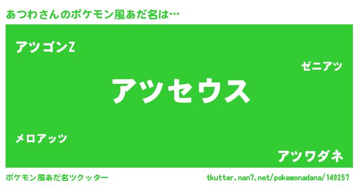 | ファンタジー風あだ名 | 『ゼアツトゥ』『エターナルアツワー』 |