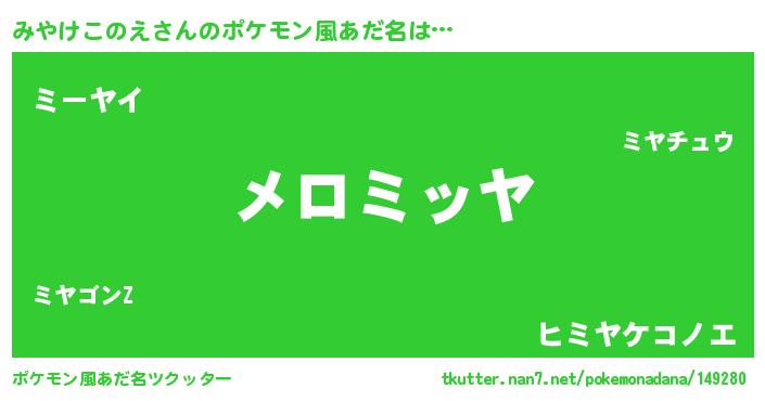 | ヘコむあだ名 | 『みやぷりん』『みやもー』『豆乳』 |