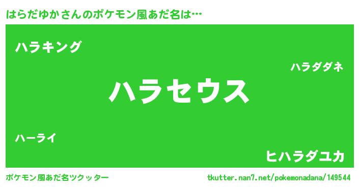 | 男性向けラノベタイトル風あだ名 | 『Re:はらだゆかから始める異世界生活』 |