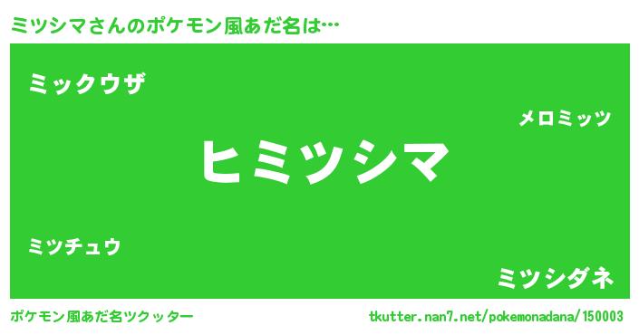 | 女子向けラノベタイトル風あだ名 | 『ミツシマの卵を拾いまして』 |