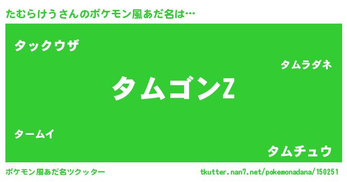 | ヒーロー風カッコイイあだ名 | 『天空の使者たむらけう』『仮面タムダー』 |