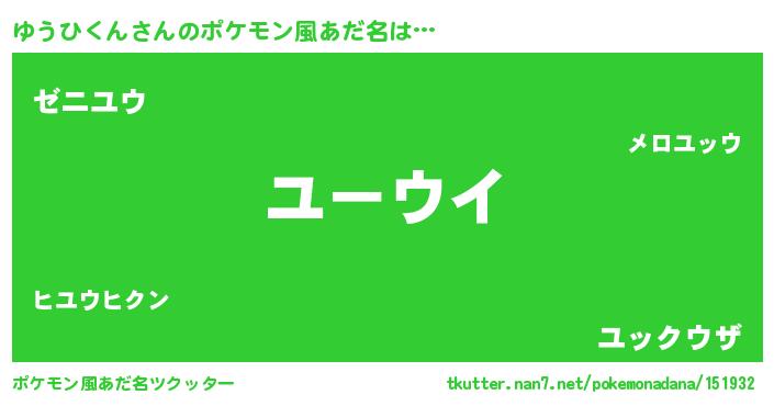 | ヒーロー風カッコイイあだ名 | 『仮面ユウダー』『ネオユウヒクン』 |