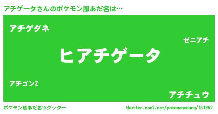 | 意味不明あだ名 | 『とにかく怪しいアチゲータ』 |