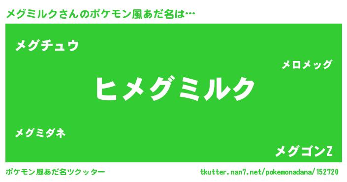 | 男性向けラノベタイトル風あだ名 | 『メグミルクの嫁は女の子じゃないと思った?』 |