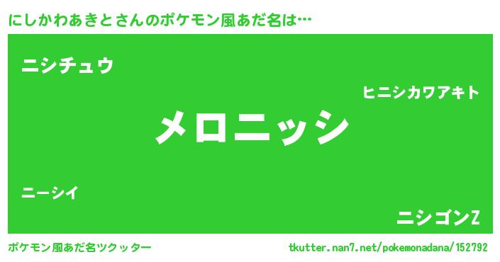 | 男性向けラノベタイトル風あだ名 | 『緋弾のニシカワアキト』 |