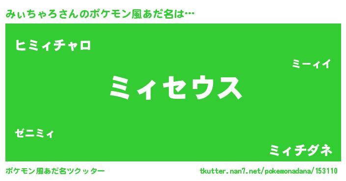 | ヒーロー風カッコイイあだ名 | 『究極戦士ミィチャロ』『天弓騎士ミィ』 |
