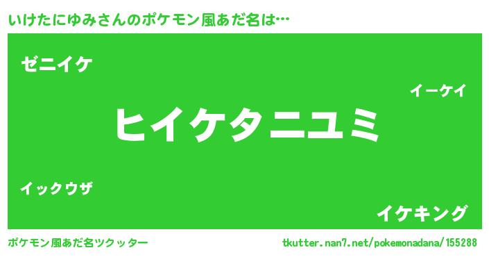 | 女子向けラノベタイトル風あだ名 | 『いけたにゆみの卵を拾いまして』 |