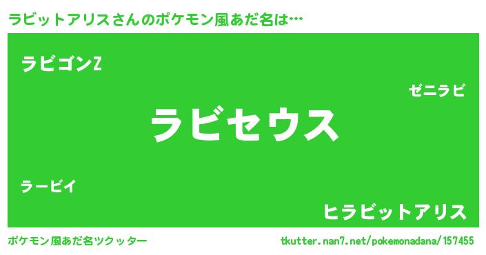 | 男性向けラノベタイトル風あだ名 | 『Re:ラビットアリスから始める異世界生活』 |