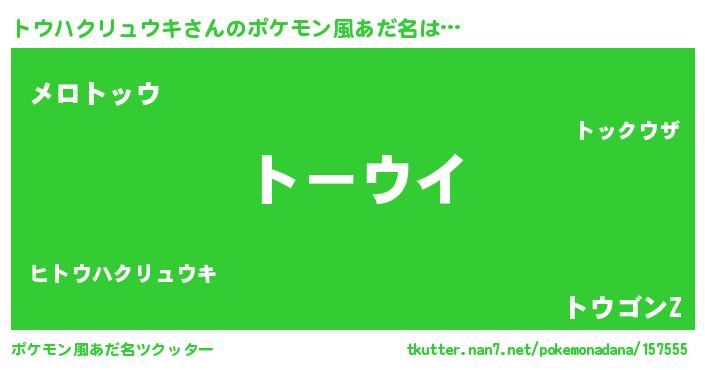 | 意味不明あだ名 | 『住所不定無職トウハクリュウキ(65歳)』 |